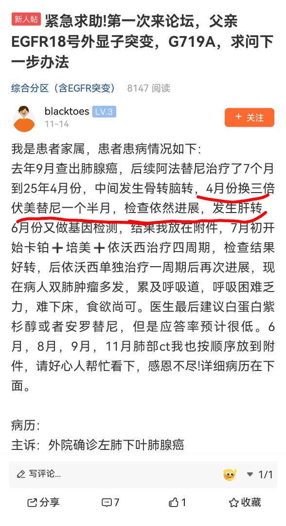 阿法替尼价格不低,对G719A有效,但效果通常不如三代药对经典突变那样强劲和持久。医生凭经验说“效果可能不好”是基于临床观察,值得重视。